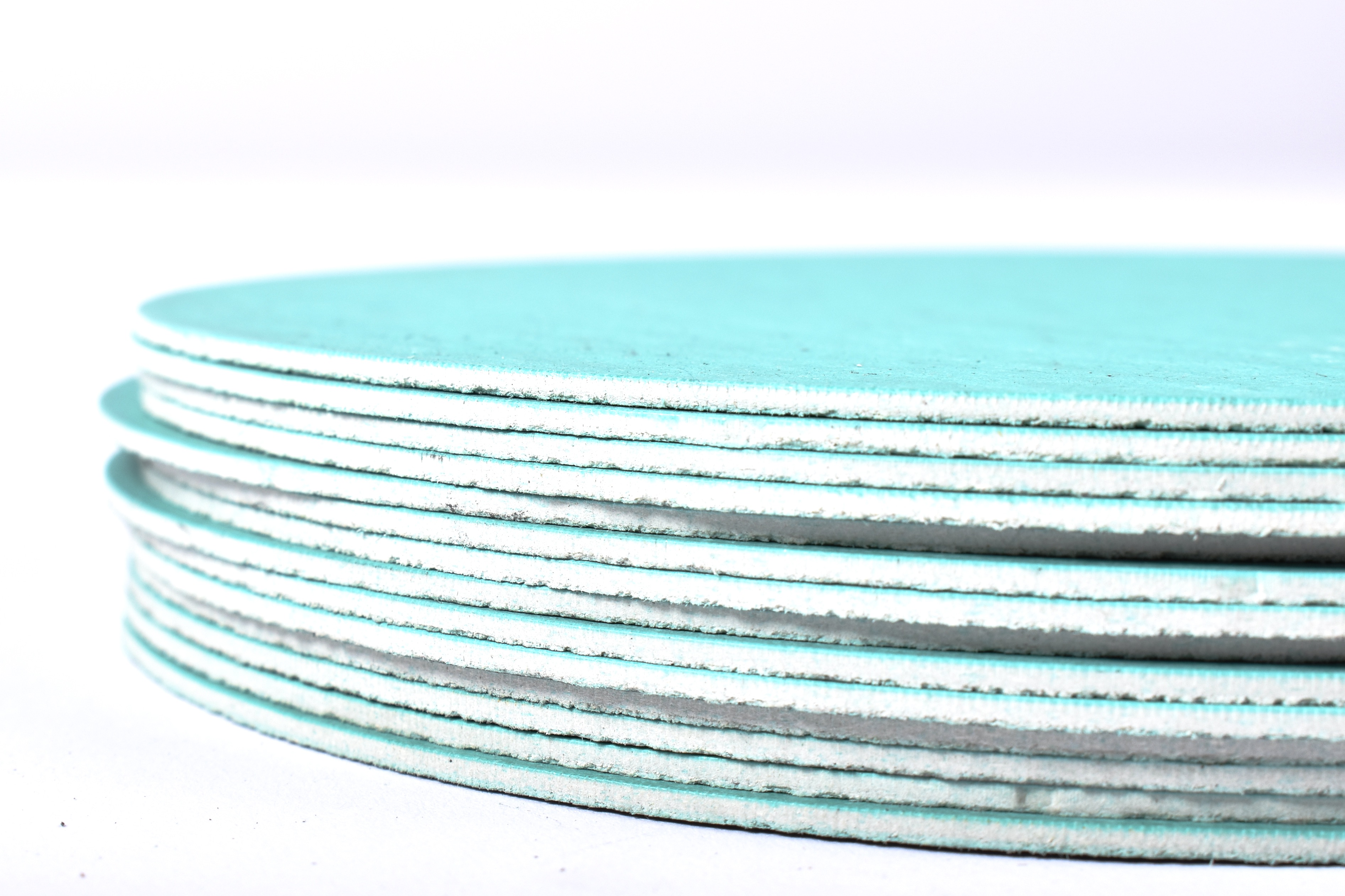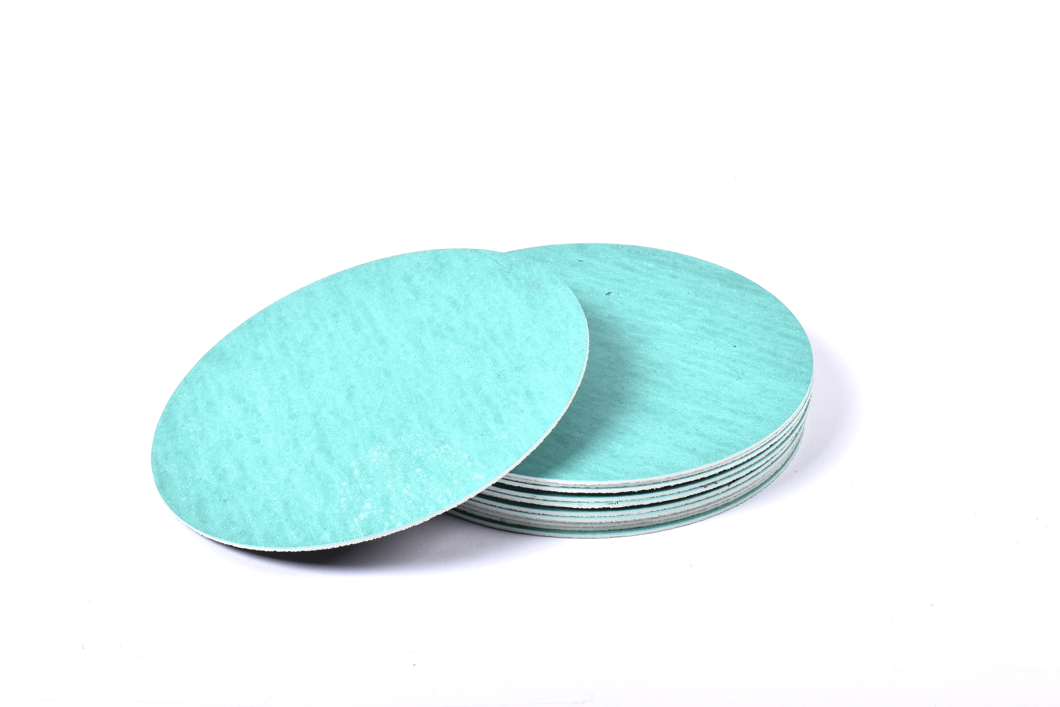Offcut of fiber disc from the manufacturing industry. The fiber disc is light green and is made from aromatic polyamide, aramidsynthetic, rubber. The surface of this material is smooth. Expect this material to be new.