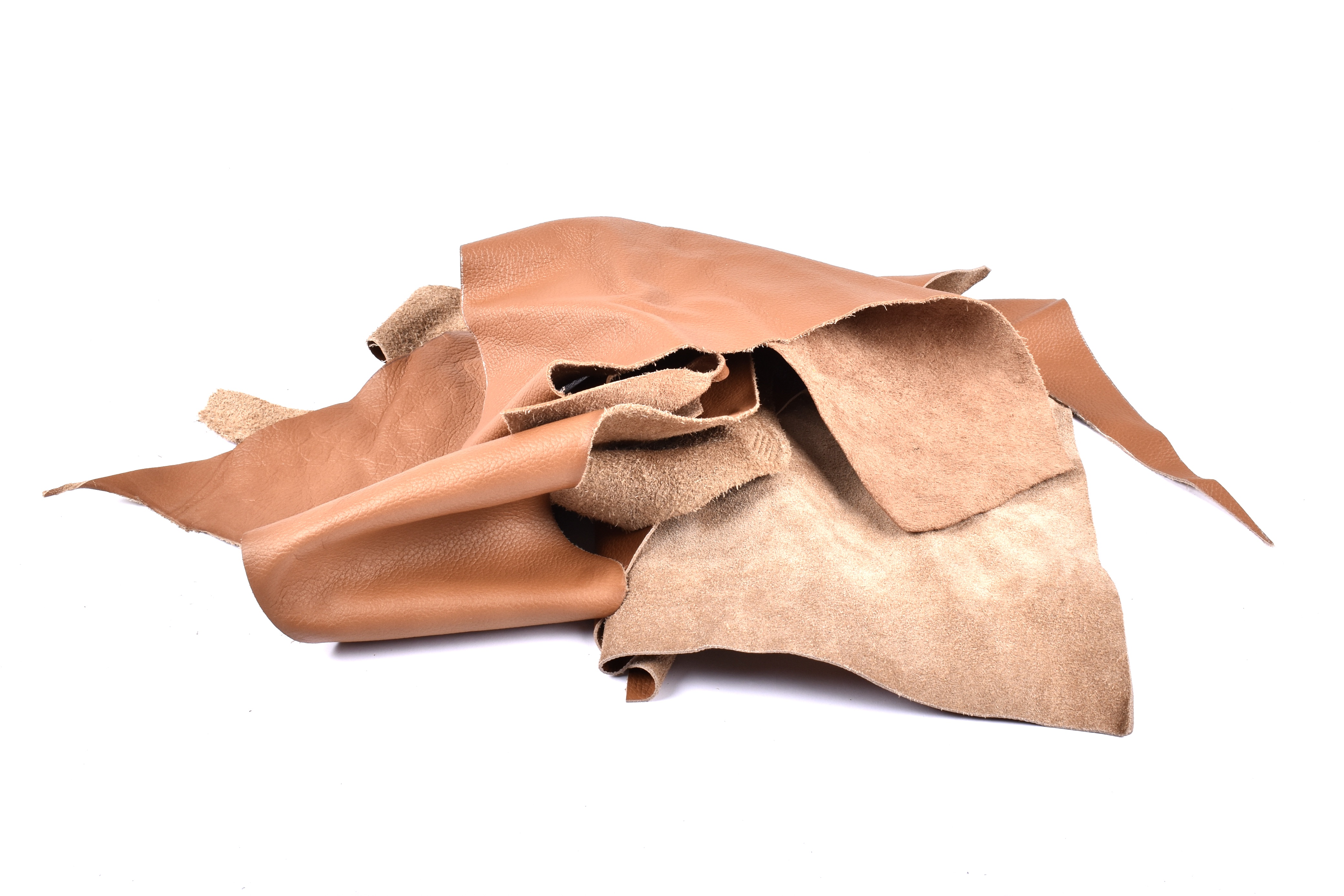 Offcut of leather (assorted sizes) from the process of polstering furniture. The leather (assorted sizes) is cognac and is made from cow hide. The surface of this material is smooth on one side. Expect this material to be new with imperfections.