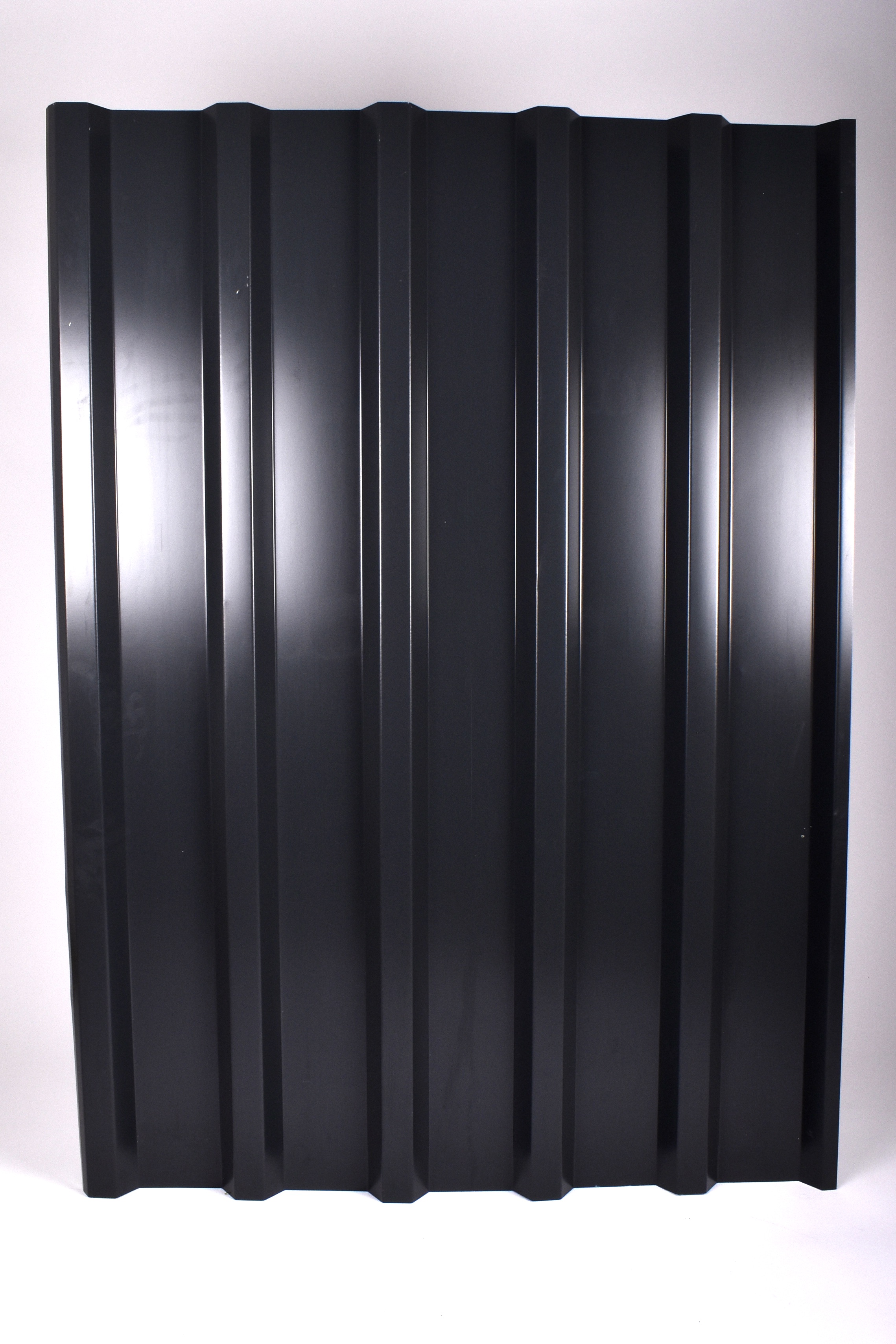 Offcut of sheet metal lp35 from the building industry. The sheet metal lp35 is grey and is made from coated steel. The surface of this material is smooth. Expect this material to be new.