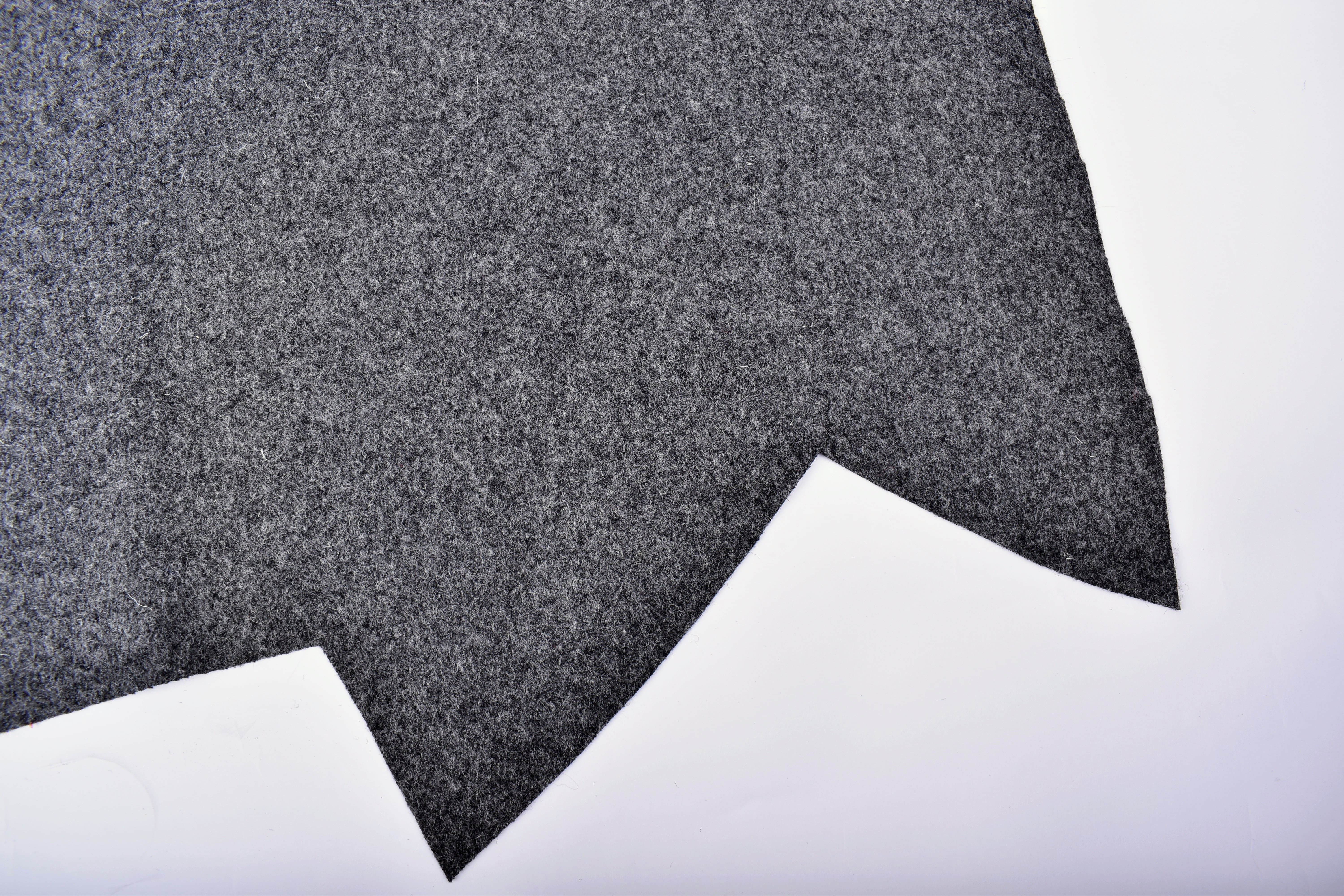 Offcut of wool melange upholstery textile kvadrat from the furniture manufacturing. The wool melange upholstery textile kvadrat is dark grey and is made from wool. The surface of this material is textured. Expect this material to be new.